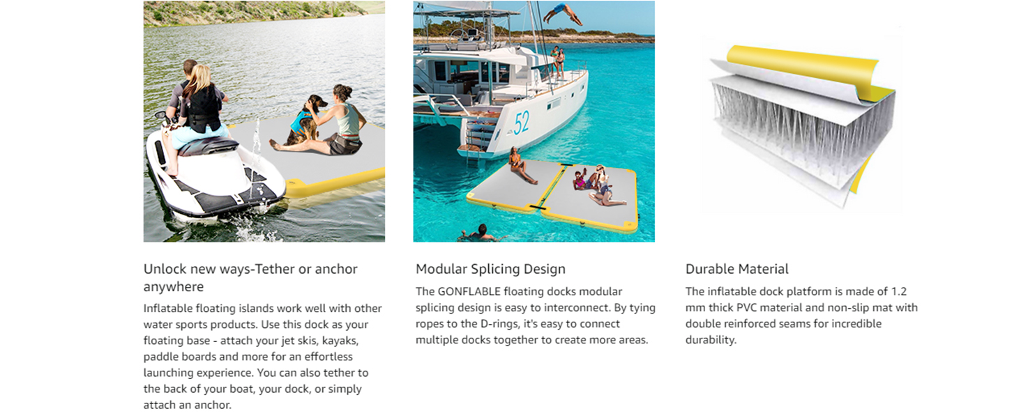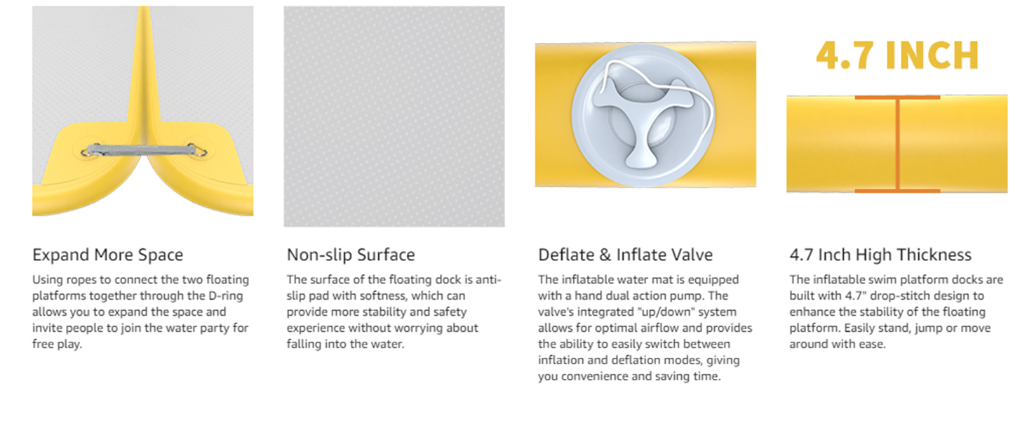 Create your own aquatic paradise with our premium water floating platform. Crafted for ultimate enjoyment, this platform is perfect for socializing, sun-soaking, and waterfront activities. Elevate your aquatic lifestyle with this top-quality floating deck!