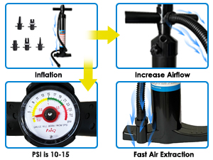 | Included Components | Dual Action Hand Pump 1 pc, White Carry Bag 1 pc, Patch Kit 1 pc (including Inflation port wrench), Inflatable Raft 1pc |