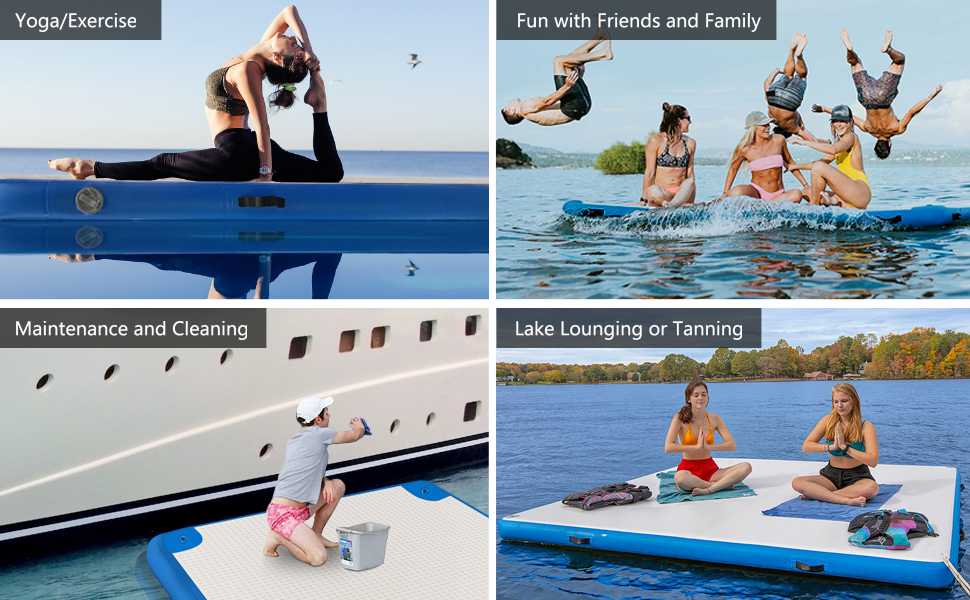Enlarged pad on the floating dock is slid-proof and pretty soft to provide more stability and safty experiences. It is safe, strong and wear-resistant to use, and can provide a comfortable dining experience on the water, enough to support kids and adults to play without worry about falling into the water.