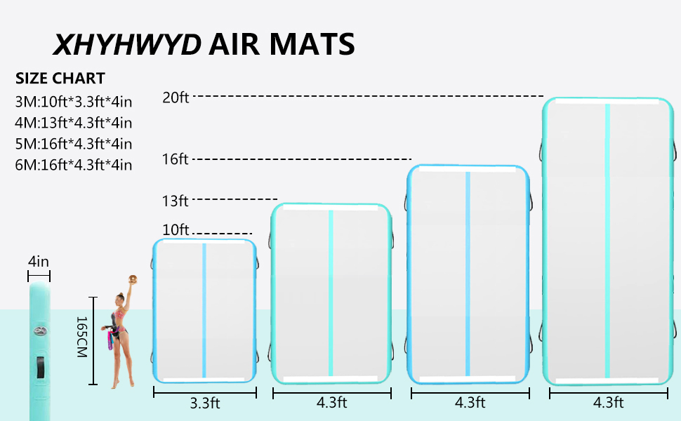 XHYHWYD Inflatable Air Gymnastics Mat 10ft/13ft/16ft/20ft Tumbling Mat with Electric Pump 4.3ft Extra Wide 4 Inches Thich Tumble Track for Home Use/Training/Cheerleading/Yoga/Water